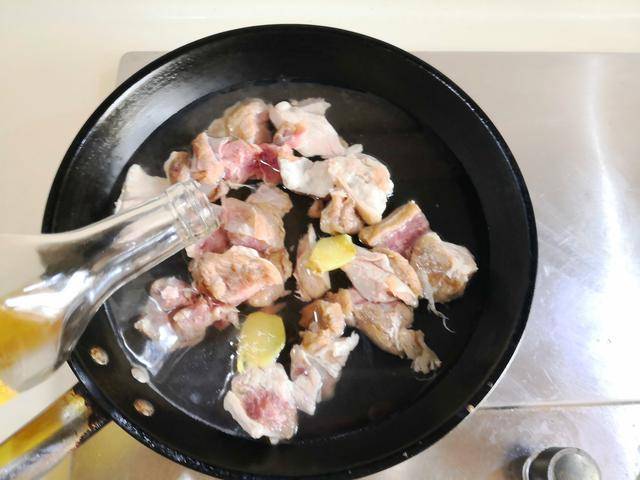 制作过程:1. 烧锅水,将羊排块放进冷水锅中焯煮,加入少许姜片和料酒去腥,将其焯出浮沫后捞出放入电炖锅中;