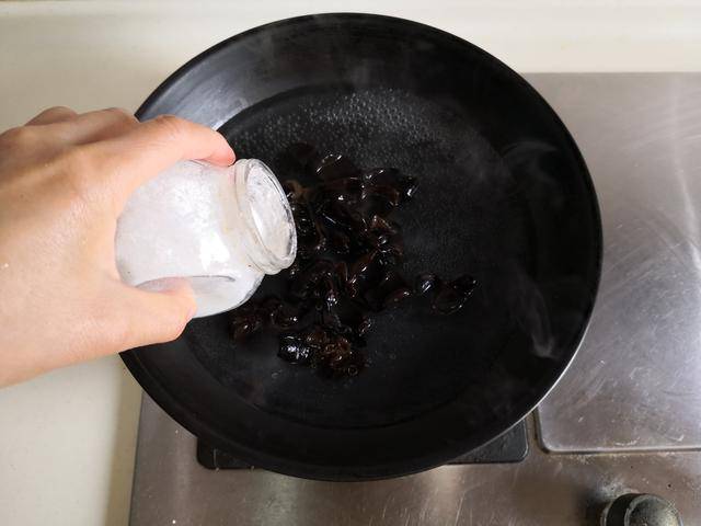 制作过程:1. 将黑木耳用冷水泡软, 烧锅开水,加入少许盐, 将泡软的黑木耳放进锅中焯煮两、三分钟后捞出备用;