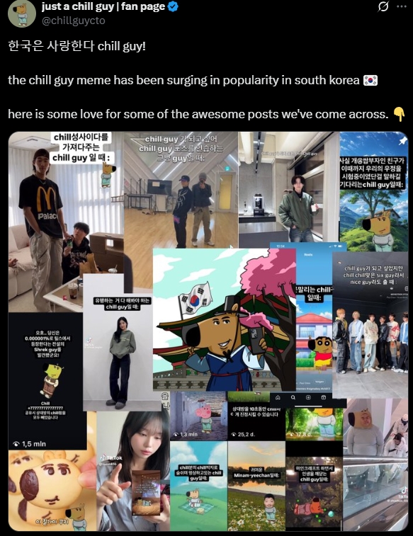 随后,CHILLGUY 迅速在拉丁美洲、非洲和中东国家也出现一定热度。在某西方国家,人们甚至给他起了个新名字,就连该国家总统也开始使用“Chill Guy”这个梗。