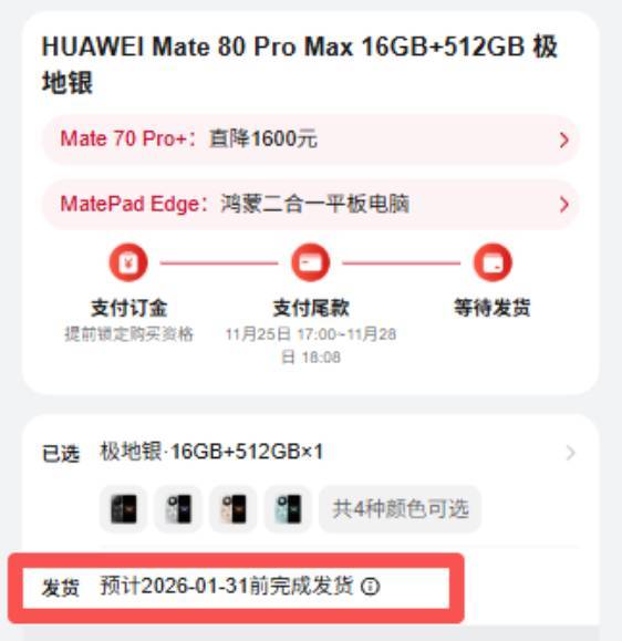 华为Mate 80系列发布在即,部分型号发货已排至明年1月