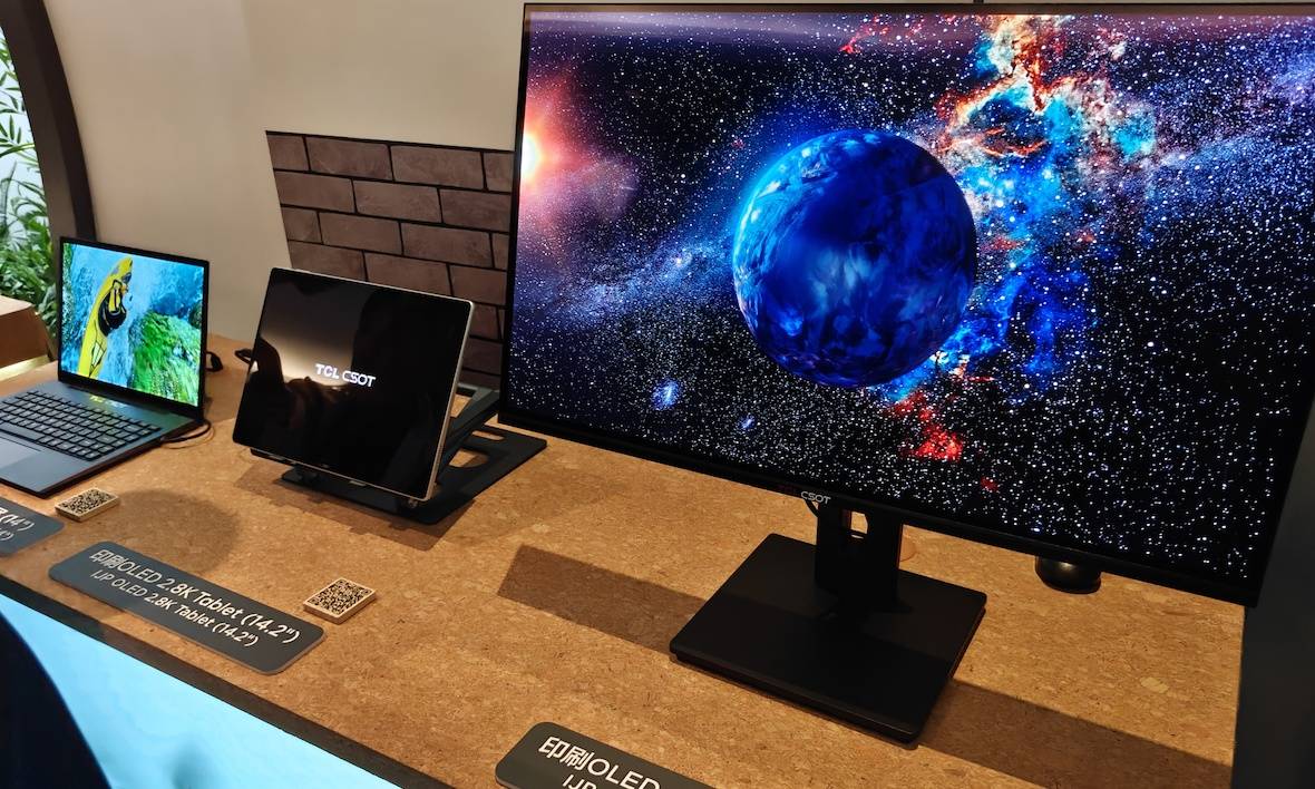 从我们自己了解以及体验的情况来看,自2024年底,TCL华星就在其5.5代OLED生产线上开始量产喷墨打印OLED屏幕,首批下线产品为21.6英寸4K显示器,主要面向医疗市场。这条新的打印生产线将有助于降低成本,从而拓展笔记本电脑、平板电脑和显示器等消费级应用领域。后来有消息称这条5.5代线还会量产手机用的印刷OLED面板,不过现在看来似乎有点难。武汉5.5代线据说明年会量产27英寸的PC显示器用OLED面板,但不管如何现在TCL华星在印刷OLED上的产能是比较吃紧的。
