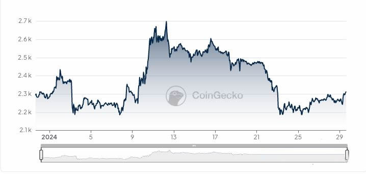 自美国批准现货比特币交易所交易基金(ETF)以来,投资者和交易员一直在密切关注以太坊的价格。比特币现货 ETF 批准后,以太坊创下了今年新高 2,720 美元,但很快就下跌并进入盘整阶段。