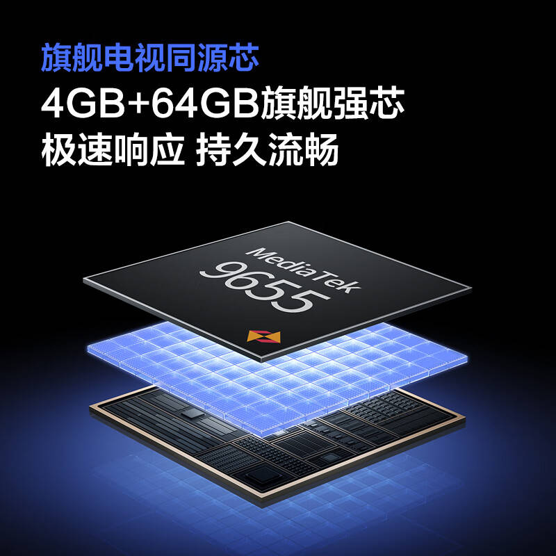 产品配备联发科 9655 芯片和 4GB+64GB 存储组合,内置智能电视系统,支持杜比视界和杜比全景声。自带氮化镓电源适配器,相比传统电源更节省空间。