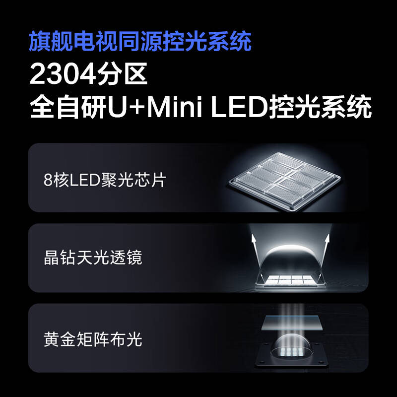 显示器搭载行业首发的黑曜屏技术,配备双层纳米级 LR 低反膜,黑度提升 33%。内置 2304 分区 U+ Mini LED 灯珠,支持 AM 驱动逐点调光,覆盖 98% DCI-P3 色域和 85% BT.2020 色域,ΔE<1。