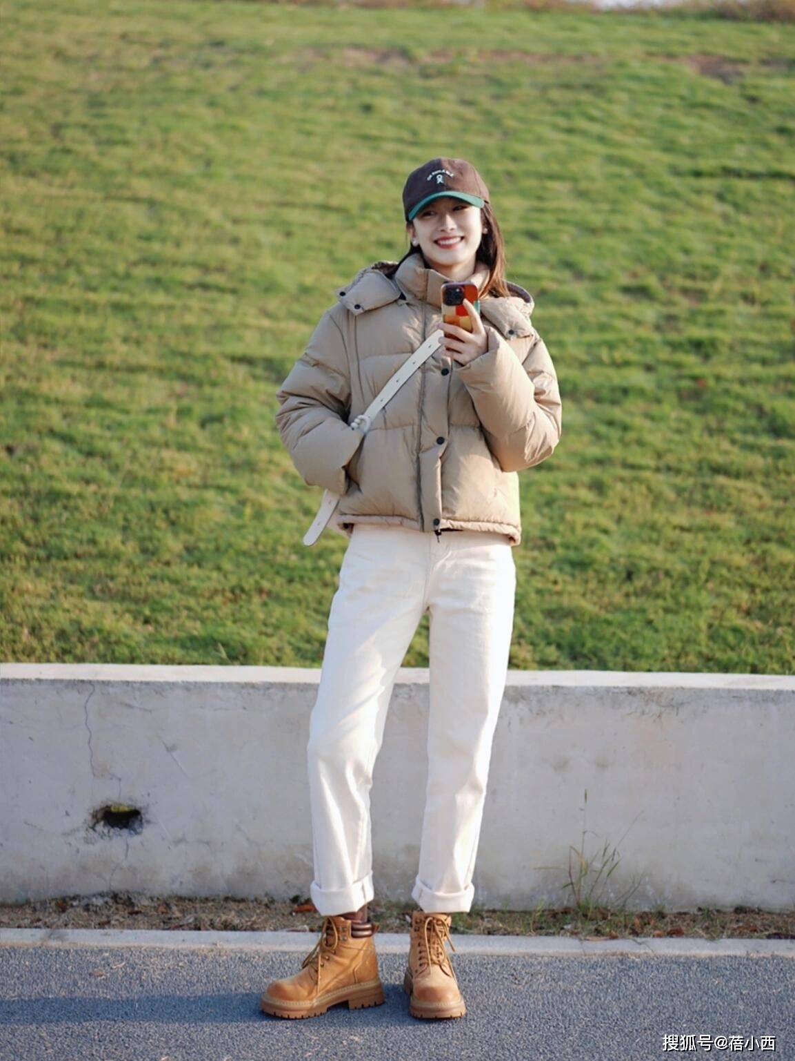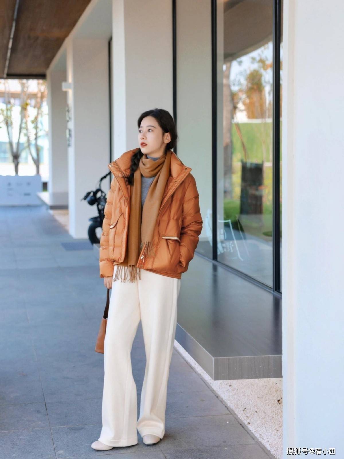 今年冬天突然流行起“羽绒服+小白裤”,适合40+女生,显瘦又高级