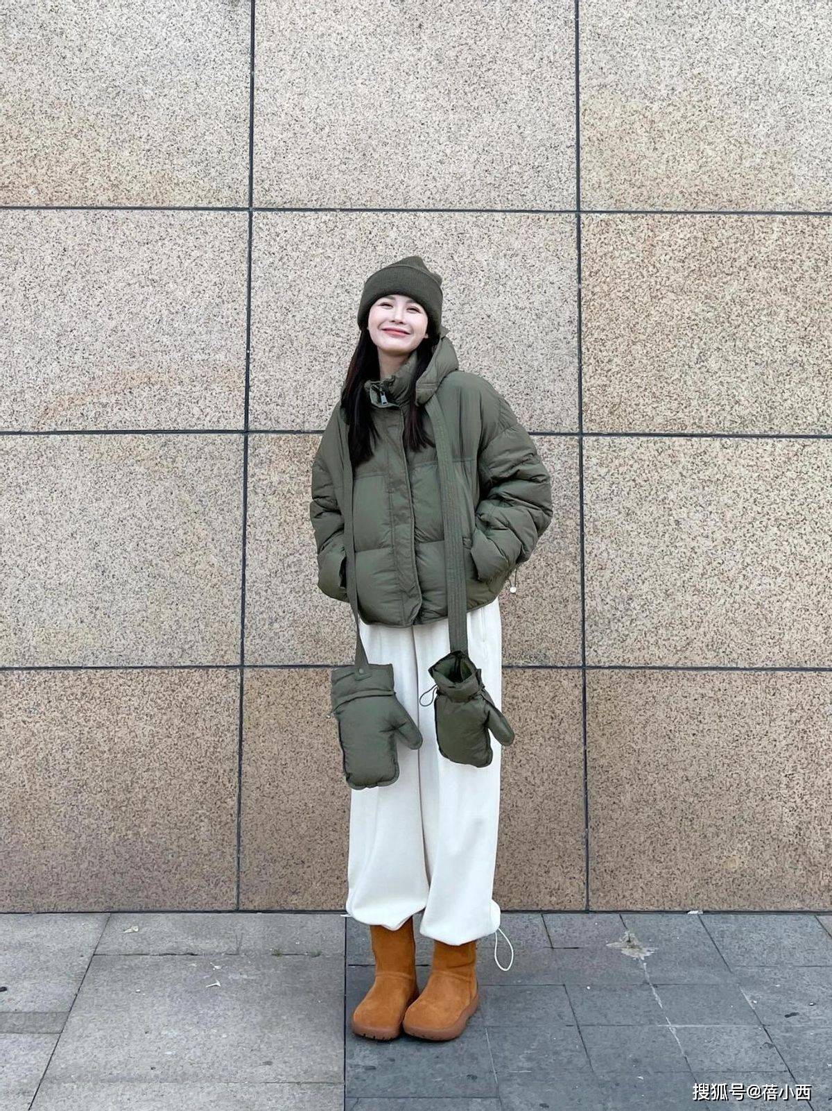 羽绒服搭配阔腿裤和平底鞋也很实用,这种组合特别舒适大方,毕竟羽绒服的保暖性能很强,与阔腿裤的休闲风格相结合,可以营造出一种轻松自在的氛围,而平底鞋的加入,则进一步强化了这种舒适度,不喜欢穿高跟鞋的姐妹们有救了。