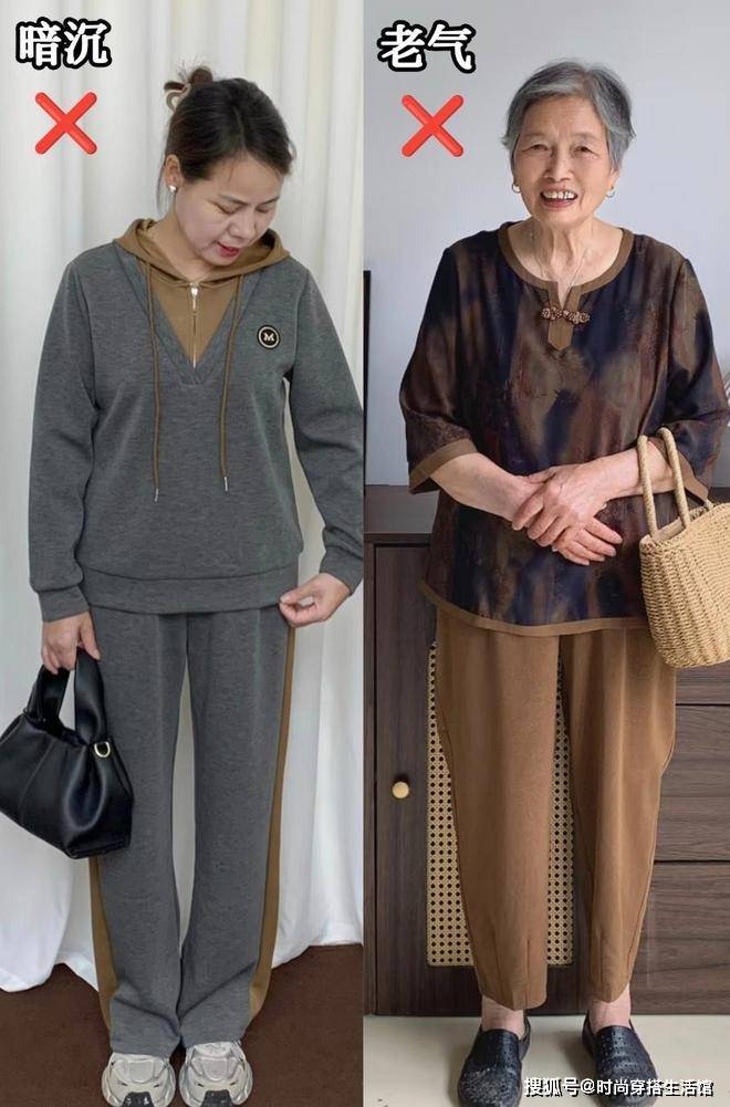 暗沉色和繁琐的印花组合,这绝对是 “王炸级” 踩雷!不少中年女人就喜欢这么穿,尤其是这种设计的老年衫和印花裙,结果就是把 “时尚灾难” 写在了脸上。衣服的花色花里胡哨到让人眼晕,原本的好气色也被衬得土气十足,油腻感直接超标!