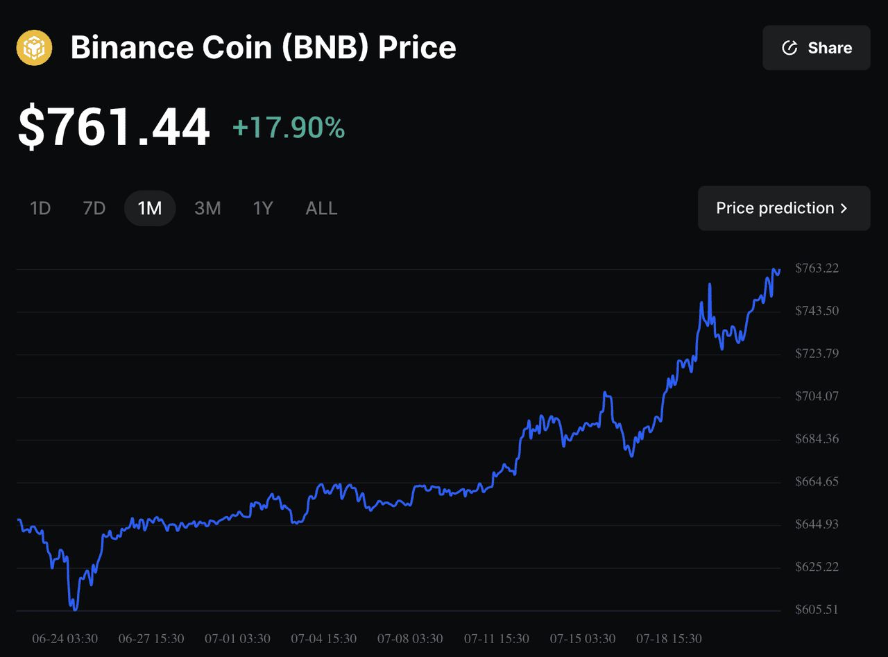 BNB 链最初由某公司于 2017 年推出,最初只是一个基于以太坊的代币,价值微不足道。但它已经发展成为一个去中心化的区块链强国。截至 2025 年 7 月,BNB 价格超过 700 美元,自推出以来增长超过 10,000 倍。