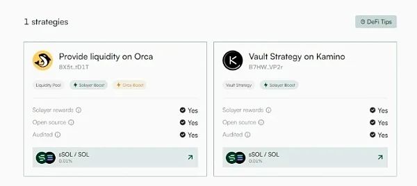 更妙的是,你还可以把通过 Solayer 获得的 sSOL(再质押的 SOL)用到 Solana 生态的其他地方,比如借贷、提供流动性等等。目前来看,Kamino 的 sSOL/SOL 保险库是个不错的选择,可以同时获得激励收益和 Kamino 积分。