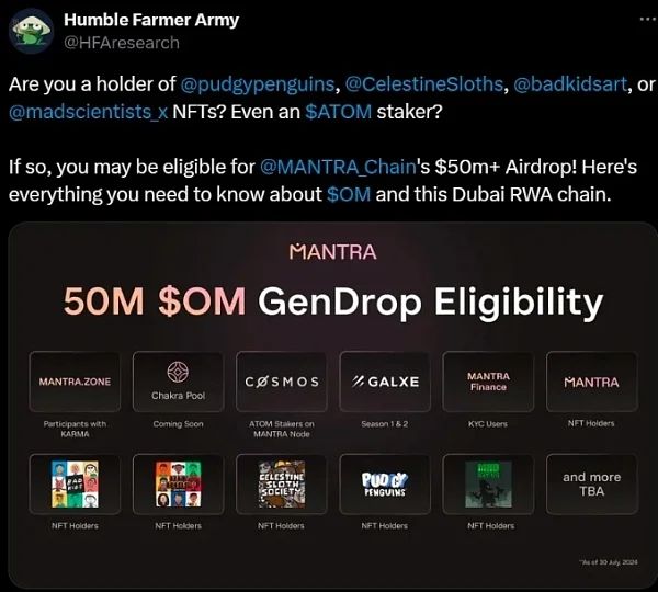 Mantra 是一个基于 Cosmos 构建的 Layer 1 区块链,专注于支持现实世界资产。它的目标是成为一个无需许可的区块链,为各种应用提供支持。