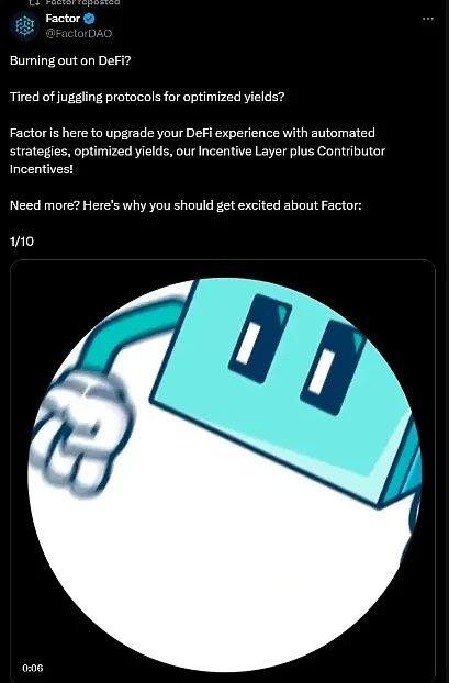 Factor 是一个可组合的 DeFi 层,旨在增强和简化收益获取。通过 Factor,用户可以轻松地将资产存入自动管理的保险库,参与各种收益策略,并获得额外的代币激励。