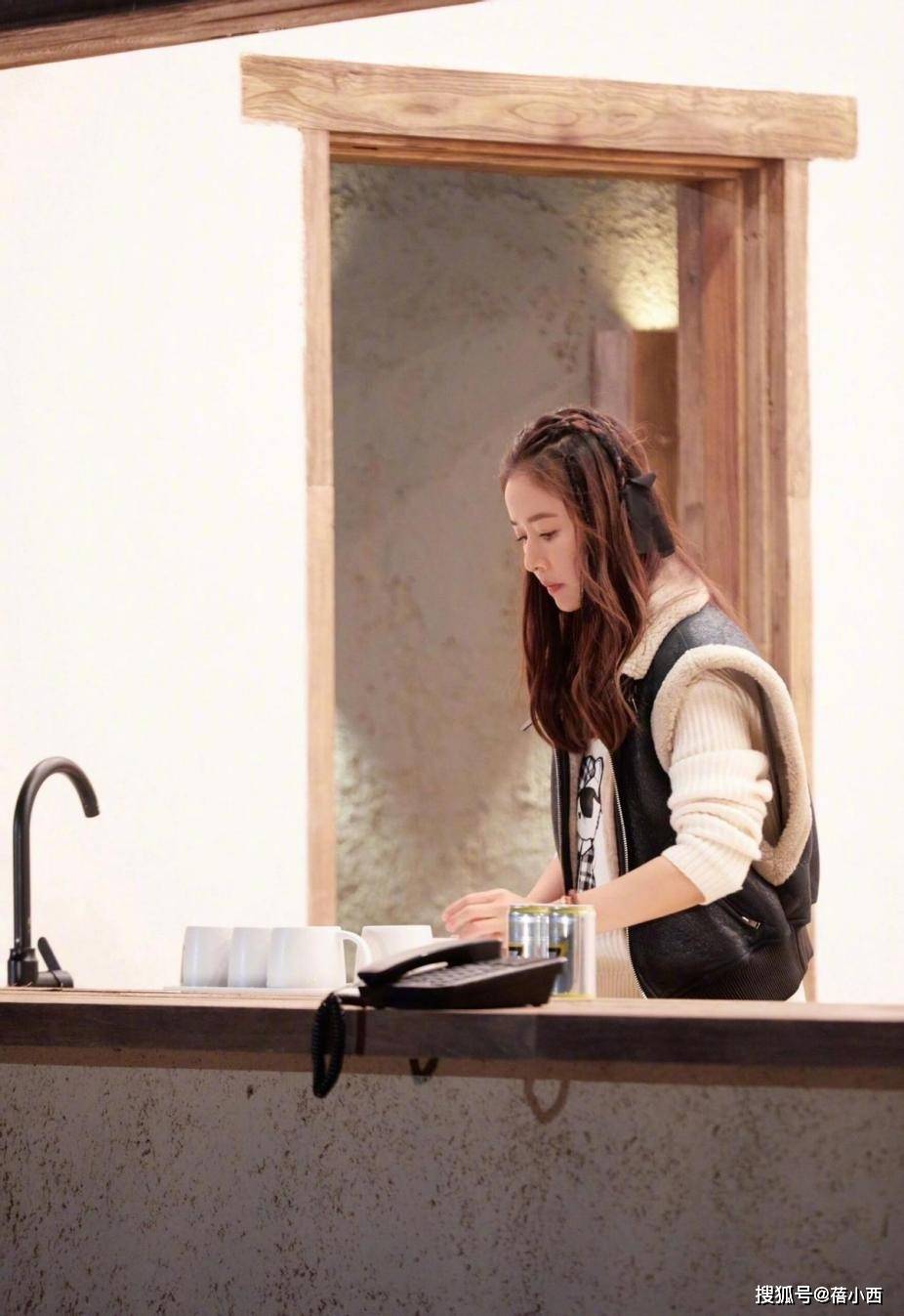 为了达到更好的保暖效果,林心如在卫衣上还搭了一件马甲,它的里子面料是绒,摸上去毛绒绒的,十分舒适。腿上的蓝色牛仔裤与卫衣是老搭档了,哪个季节都会有它的身影。