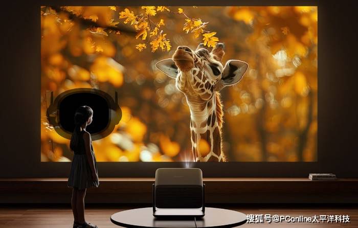 三重硬件护眼技术则守护全家用眼健康,SGS A+认证确保低散斑、低彩边,硬件级0有害蓝光从根源过滤伤害,护眼头盔功能会在有人经过画面时实时降低亮度,配合环境光自适应调节,即使长时间观影或上网课,眼睛也不易干涩酸胀。