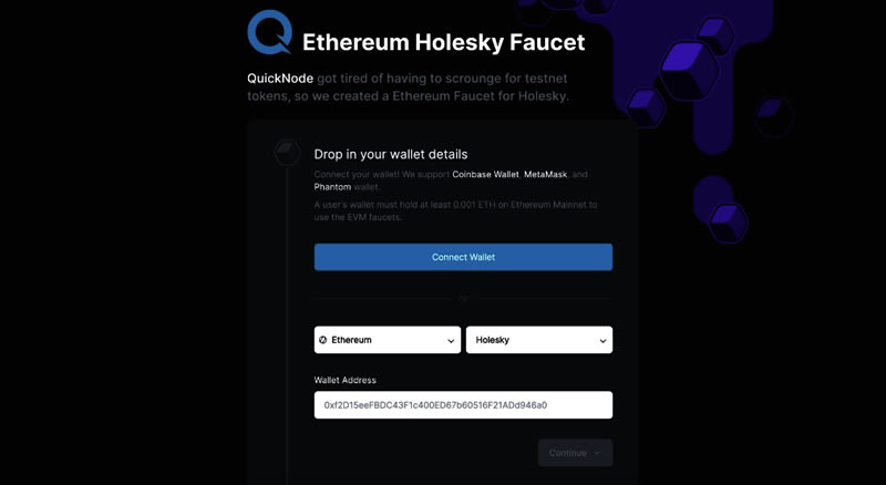 QuickNode 的 Holesky 龙头为用户提供了一个便捷的解决方案。通过它,你可以轻松获取测试代币,用于测试软件、部署智能合约和启动应用链等任务。
