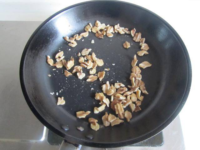 制作过程:1. 烧热锅,无需加油,中小火煸炒核桃,这样能让核桃更酥脆,炒好后先盛出来备用;