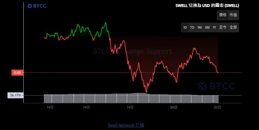 截止 12 月 20 日撰写本文时,SWELL 币的交易价格为 $0.0336,在过去 24 小时上涨了 1.92%。不过,该代币 24 小时交易量下跌了 6.48%,来到 $37,868,316.11。
