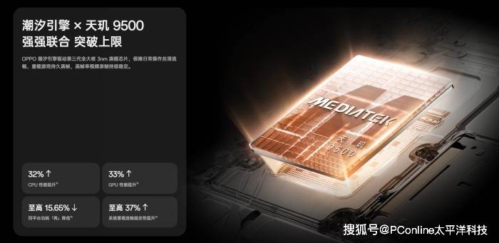 在核心硬件配置方面,Find X9 Pro搭载天玑9500,配合OPPO潮汐引擎,再加上最高16GB LPDDR5X内存与UFS 4.1闪存,既满足日常应用与AI计算需求,也为高负载场景提供持久性能输出。屏幕方面,该机配备6.78英寸1.5K分辨率LTPO AMOLED显示屏,支持高达120Hz刷新率以及最高1800尼特典型亮度,在高动态范围内容显示和多任务切换中表现出色。