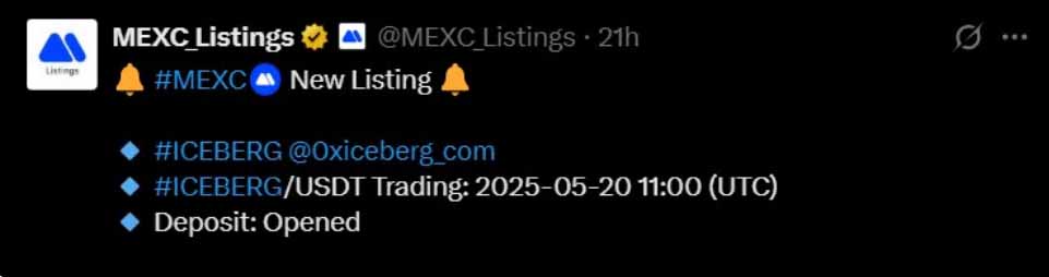 万众瞩目的时刻终于来临!$ICEBERG 加密代币将于2025年5月20日在 MEXC 交易所正式上线。对于翘首以盼 Iceberg 空投和参与公开发售的朋友们来说,这绝对是一个值得纪念的日子。