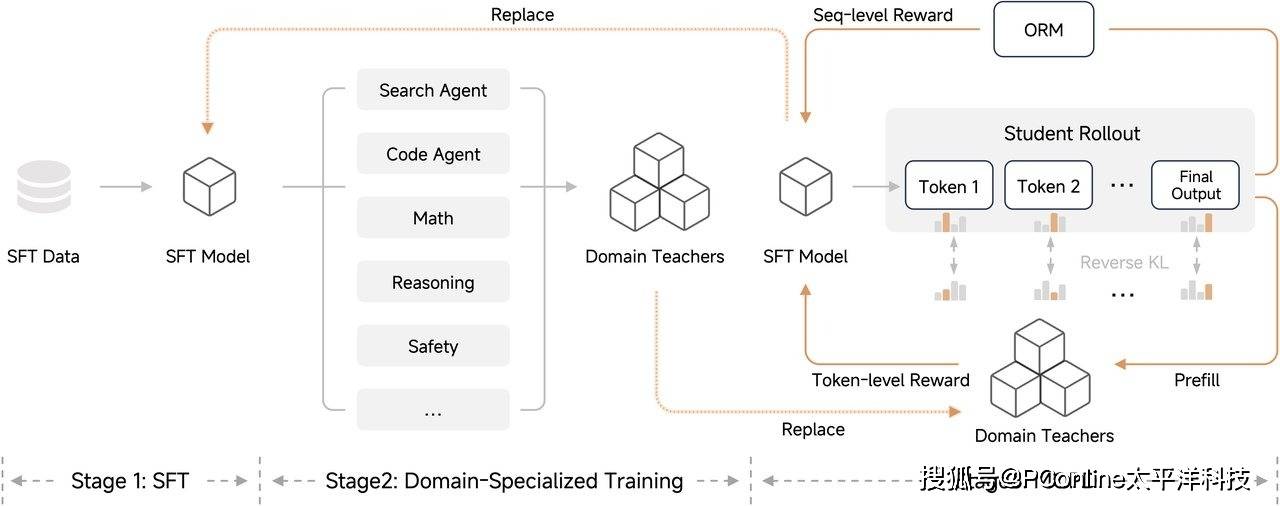 在后训练阶段,小米团队展现了极强的技术整合能力。据透露,团队采纳了Thinking Machine提出的On-Policy Distillation(在线策略蒸馏)方案,旨在将多个强化学习模型的优势进行深度融合。这一策略的效果立竿见影:小米成功在传统的监督微调(SFT)和强化学习流程中,以仅仅相当于教师模型五十分之一的计算量,达到了同等水平的性能表现。这种四两拨千斤的方法,展示了学生模型在不断迭代中具备的惊人进化潜力,最终形成了一个自我增强、自我完善的良性闭环。