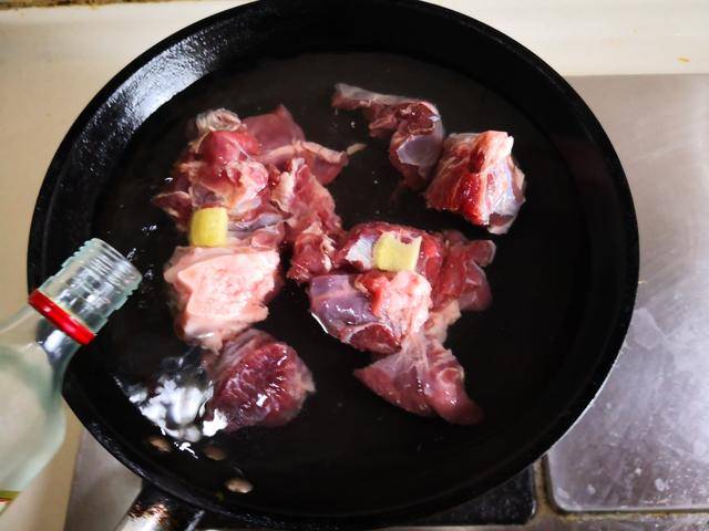 制作过程:1. 烧锅水,将牛肉块放进冷水锅中焯水,加入少许姜片和高度白酒,焯出浮沫后捞出放入电炖锅中;