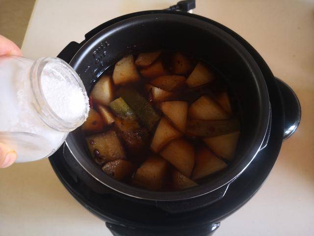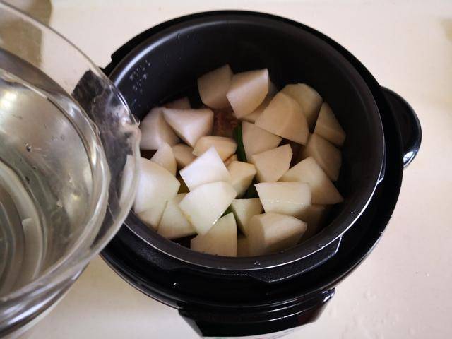 3. 放入准备好的白萝卜块,再加入适量的水;
