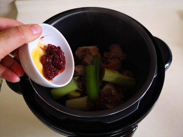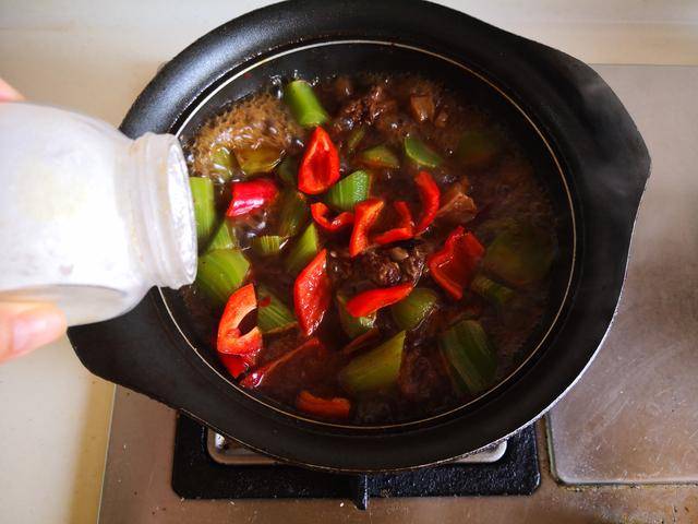 推荐菜谱【莴苣炖牛腩】 原料: 牛腩 1盘 莴苣 1根 姜 1小块 红椒 1个 干辣椒 3个 郫县豆瓣酱 1大勺 料酒 1勺 生抽 1勺 油盐 少许