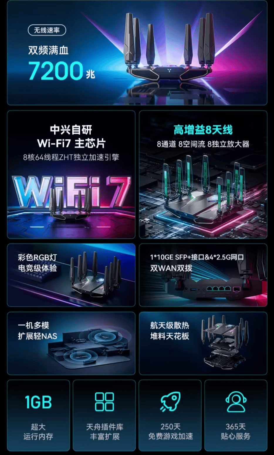 中兴推出万兆电竞路由器: 全2.5G网口配RGB灯效,首发价679元
