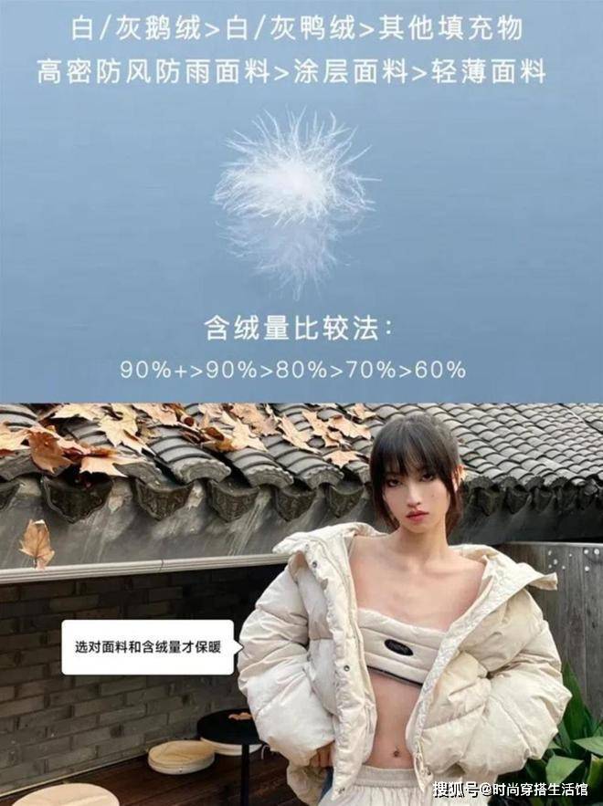 ①内搭塞下装,羽绒服敞开穿强调腰线