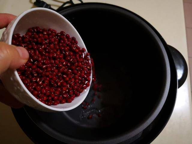 制作过程: 1. 将洗净的红豆放入电压力锅中,加入适量的水,可将红豆提前浸泡能缩短煮至的时间;