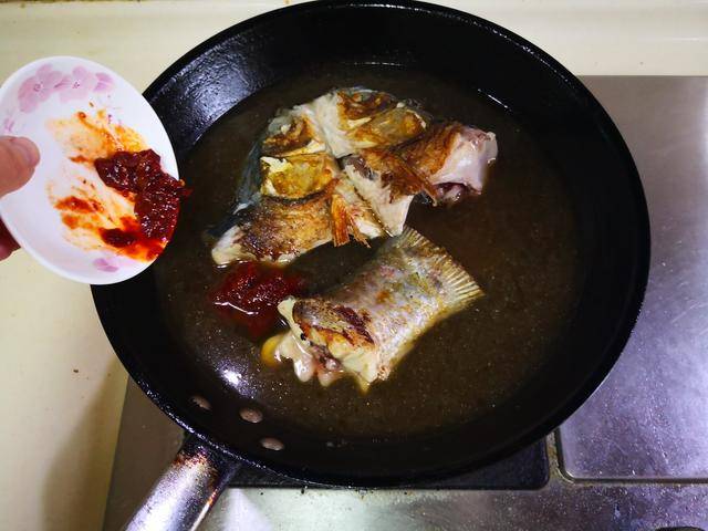 制作过程:1. 烧热锅放入少许油,将鱼肉和鱼尾放进锅中去煎,一面煎至金黄后翻面将另一面也煎至金黄;