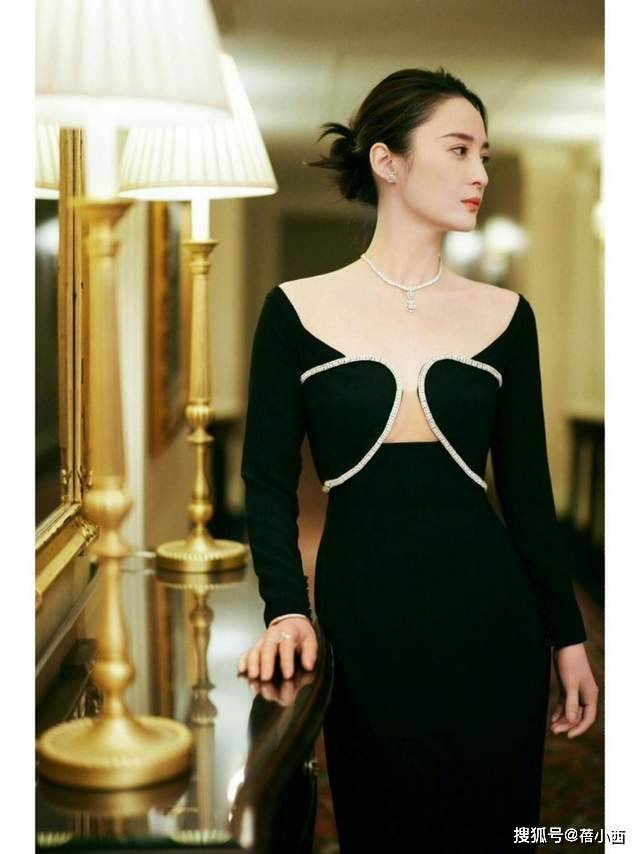 除此以外,我们来看下这条裙子设计大胆之处,就是胸部设计。第一眼看到胸部,给人的感觉是“挖了三个小洞”,露出了部分肌肤。如果想要呈现性感韵味,那么女性身材就要饱满,即前凸后翘型,才能将这件裙子的优点放大。女明星走红毯时发型较为多变,比如微卷中长发、盘发等。