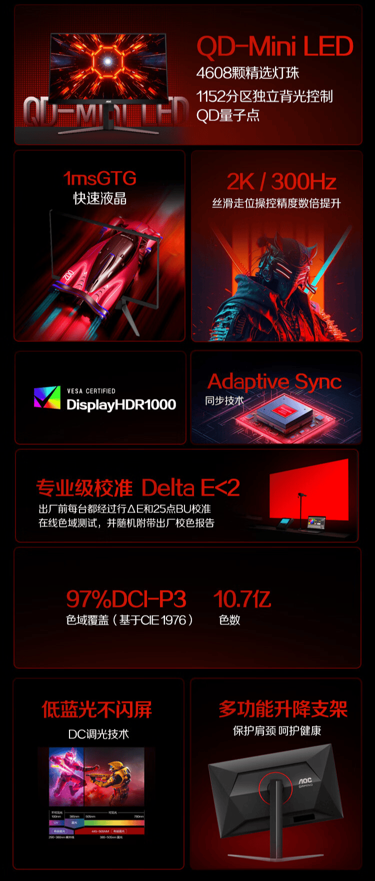 AOC推出27英寸2K 300Hz Mini LED显示器Q27G4SMN 售价2099元