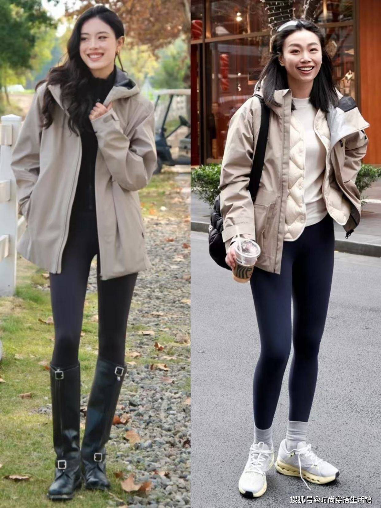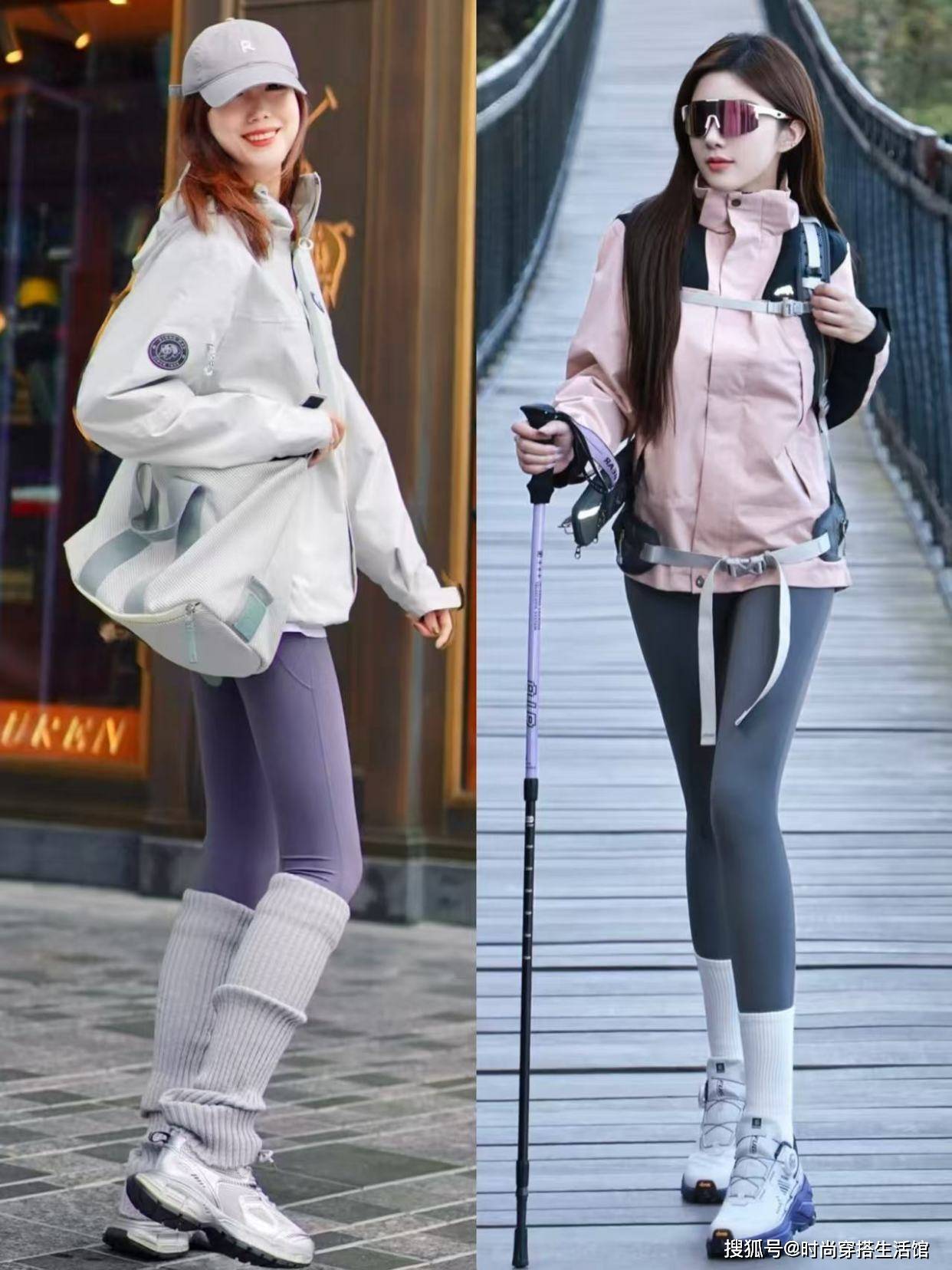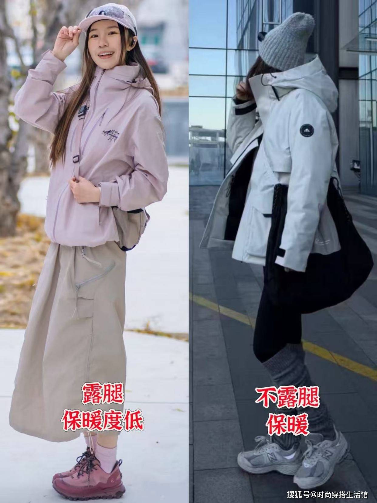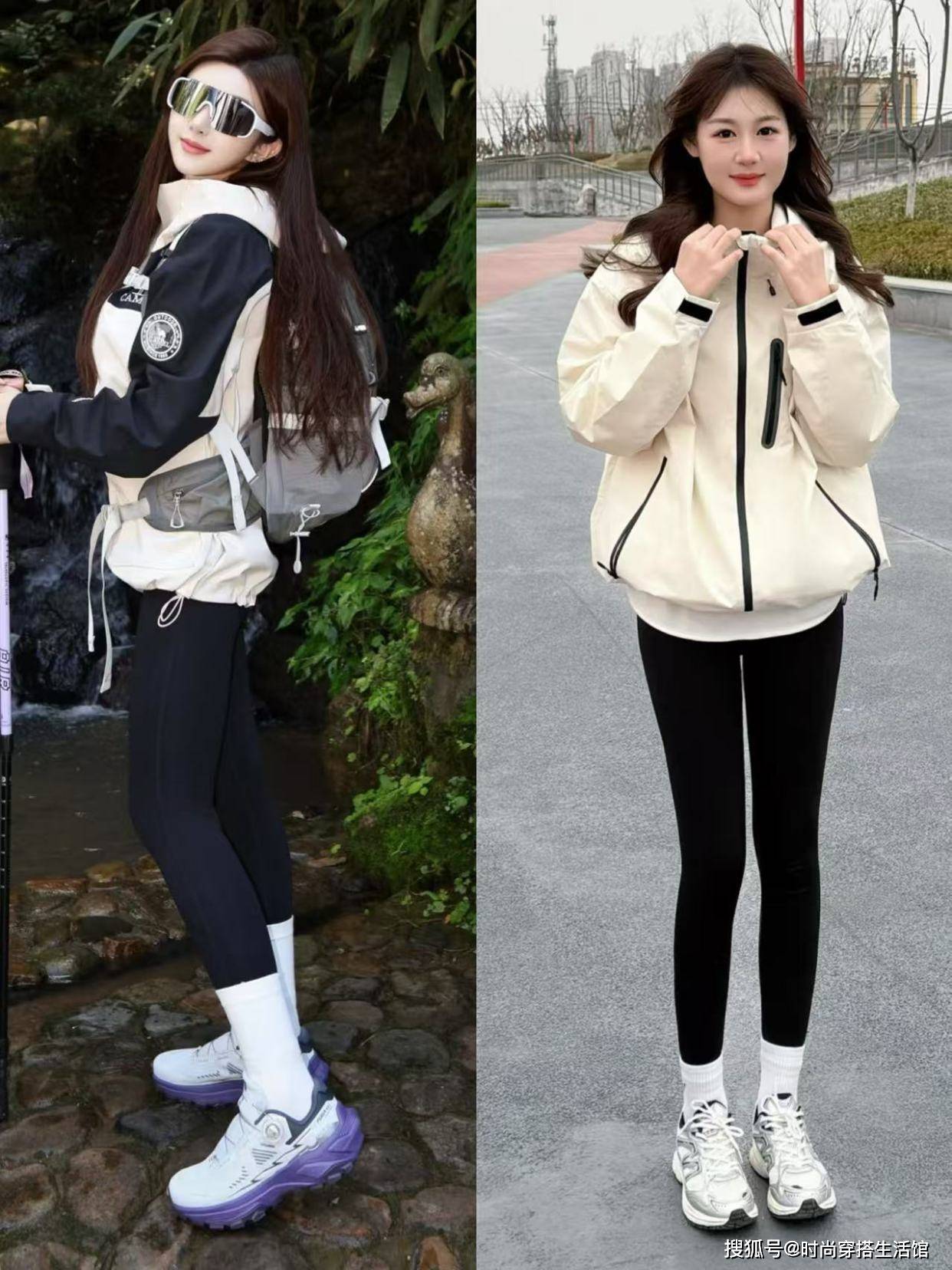 其次对于冬天来说我们选择冲锋衣和无痕裤的穿搭也是各种各样,最常见的搭配方式就是选择将拉链全部拉起来,同时还可以借助敞开穿露出高腰线,像是温度没有太低的时候,我们可以将冲锋衣敞开穿,搭配上的上衣和下装要选择高腰款式,这样才能完美的将我们腰线拉起来,从而划分出三七分身材比例,轻松实现显高显腿长效果。