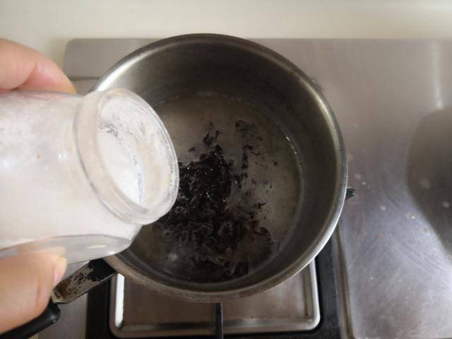 4. 高汤放入小锅中加热, 加入少许虾皮、紫菜进锅去煮上两分钟, 再加入少许盐和胡椒粉调味,盛入小钵中;