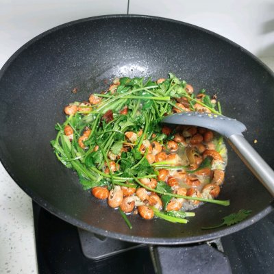 7、汤汁收下去后,放一点点鸡精提鲜,就可以出锅啦!香菜吸饱了汤汁,也超级好吃!