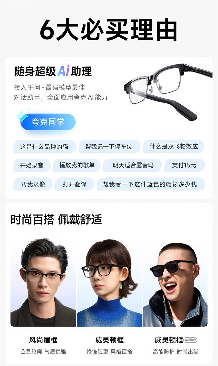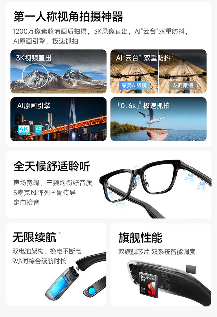 融合AI与影像新体验:夸克AI眼镜G1预售开启,双芯双系统