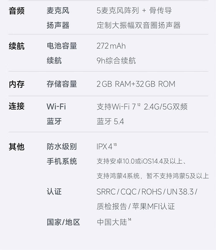 据悉,夸克 AI 眼镜 G1 提供威灵顿框、风尚眉框及太阳镜三种款式,整体重量约 40 克。硬件方面,它搭载了高通 AR1 与恒玄 BES2800 双旗舰芯片,支持在安卓与 RTOS(实时操作系统)间切换。设备内置 272mAh 电池,官方标称综合续航达 9 小时,持续待机超 25 小时。音频上,采用 5 麦克风与骨传导拾音技术,并运用偶极子定向发声技术保证通话隐私。