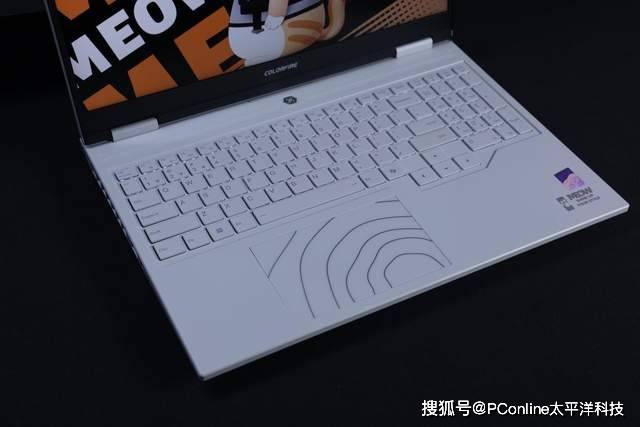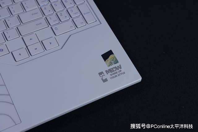 打开屏幕后,C面触摸板采用了与A面相同的ID设计,右下角也有MEOW的系列LOGO与Slogan。