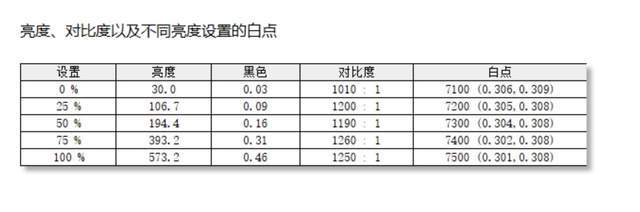 通过Spyder XElite的实测,这块屏幕覆盖色域100%sRGB,最大亮度达到573nits,平均色准ΔE为0.8,符合对此屏幕的宣传,屏幕素质出众。