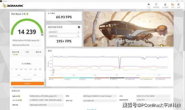 GPU的性能自不必担心,其图形性能表现符合满血功耗下RTX 5080 Laptop GPU的水平。