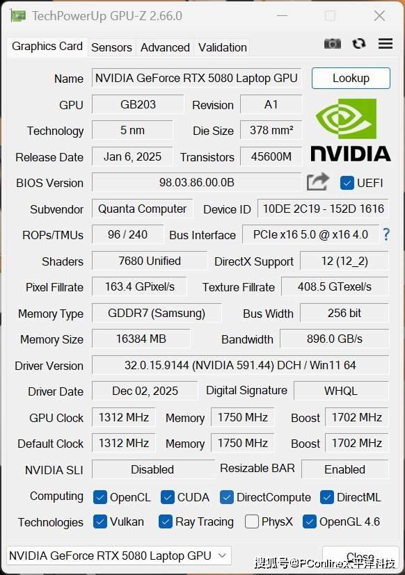 GPU:NVIDIA GeForce RTX 5080 Laptop GPU;