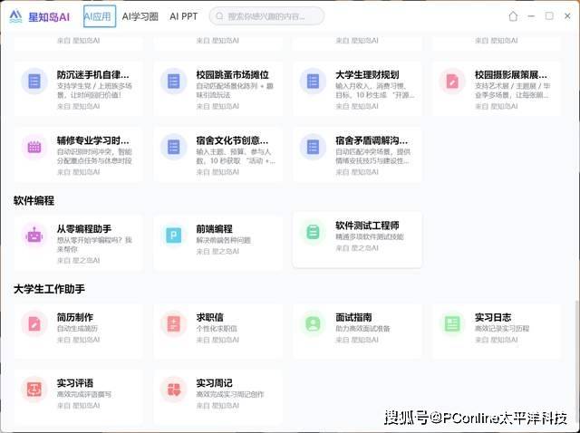 更新主要新添了两大板块,AI学习圈与AIPPT。AI学习圈为大学生群体及打工人提供了各类型的AI教程,帮助提升学习与工作效率。