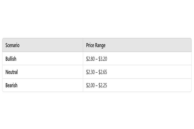 如果成功从该水平反弹,价格可能会飙升至2.65美元和2.80美元以上,进入看涨阶段,并有可能在未来几周内达到4美元甚至更高。