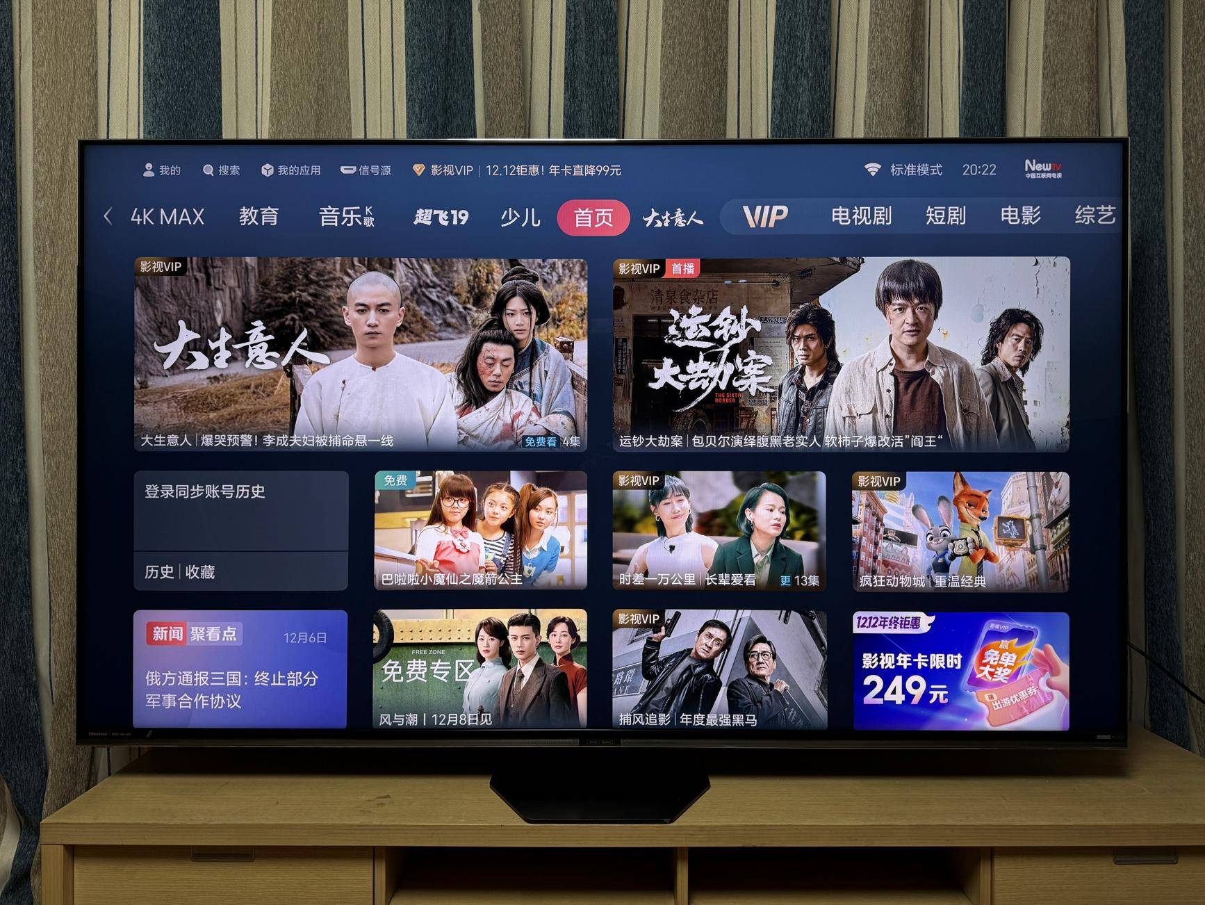 硬件部分,E8S Pro的主芯片自然还是联发科MT9655,画质芯片使用了海信RGB-Mini LED电视一贯采用的信芯H7,这也是首颗光色同控的独立画质芯片。E8S Pro采用4GB内存+128GB存储的组合。另外E8S Pro在WiFi 6的表现不错,我们在局域网中很轻易达到500Mbps以上的下行速度,这显然要比电视自带的百兆有线网口要强。
