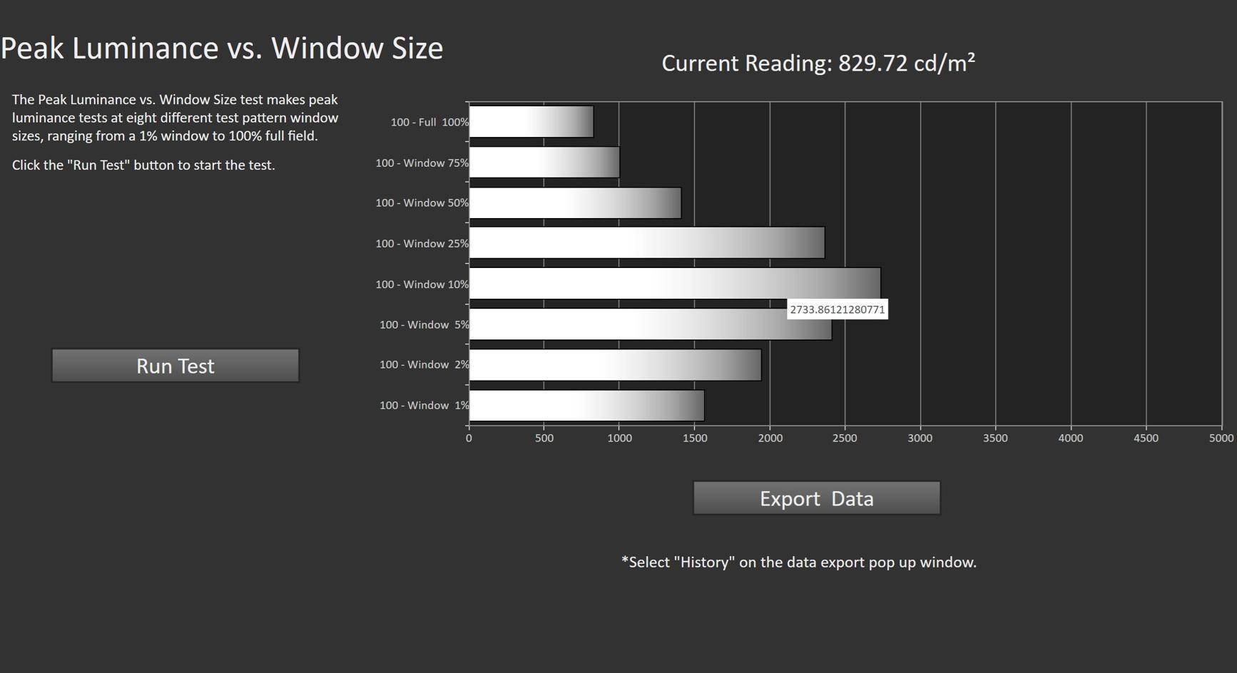 亮度部分,虽然宣传的是5200nits峰值亮度,但我们在热机状态下测试,很轻松就能在10%窗口下测到最高超过5500nits的峰值亮度。另外在Filmmaker下进行稳定峰值亮度测试,E8S Pro能超过2700nits峰值亮度,如果是在标准模式下,则稳定超过3000nits峰值亮度。特别要说的是,在Filmmaker下,E8S Pro全屏亮度就接近830nits,而在其他一些模式下则可达到1000nits的全屏亮度。这绝对是目前在全屏亮度上领先于其他电视的一款产品。尽管这是HDR的数据,但我们还是建议大家在SDR下,不要将亮度开得太高。