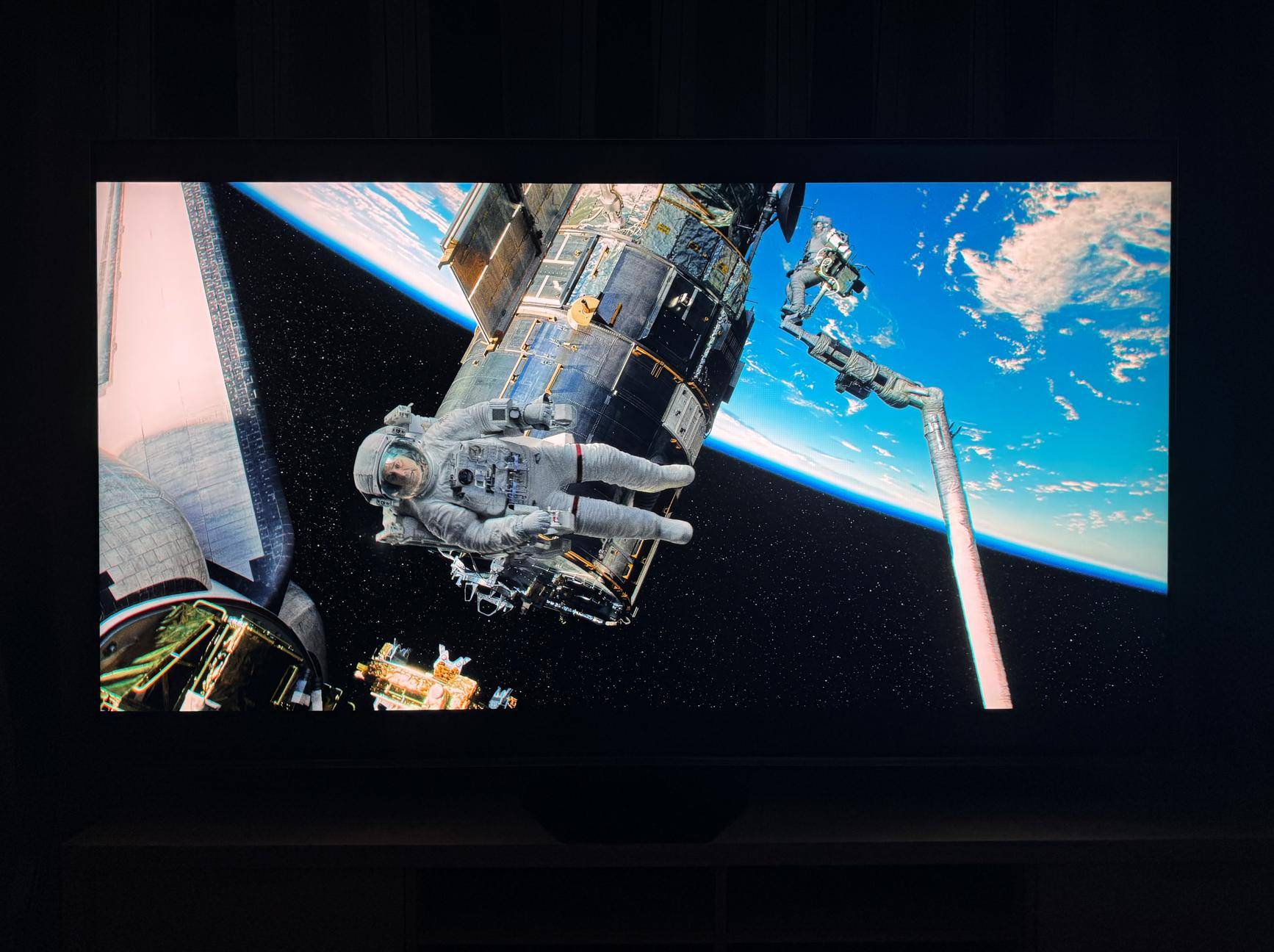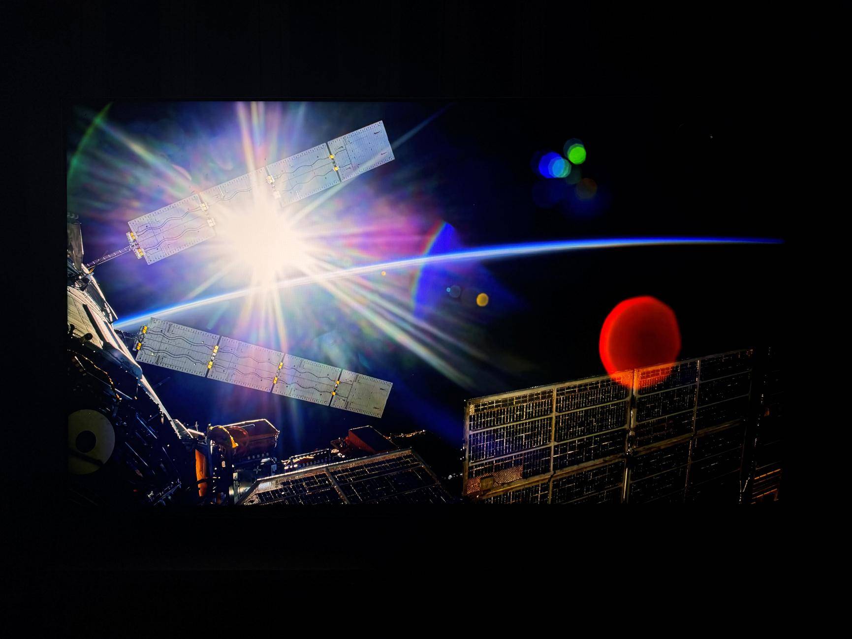 控光部分,E8S Pro的表现我们感觉和旗舰级的100UX相比也不遑多让。比如在HDR的《地心引力》中,星星的数量巨多,且形态清晰质量上乘,这点比很多背光分区数量更高的Mini LED电视做得更为出色。