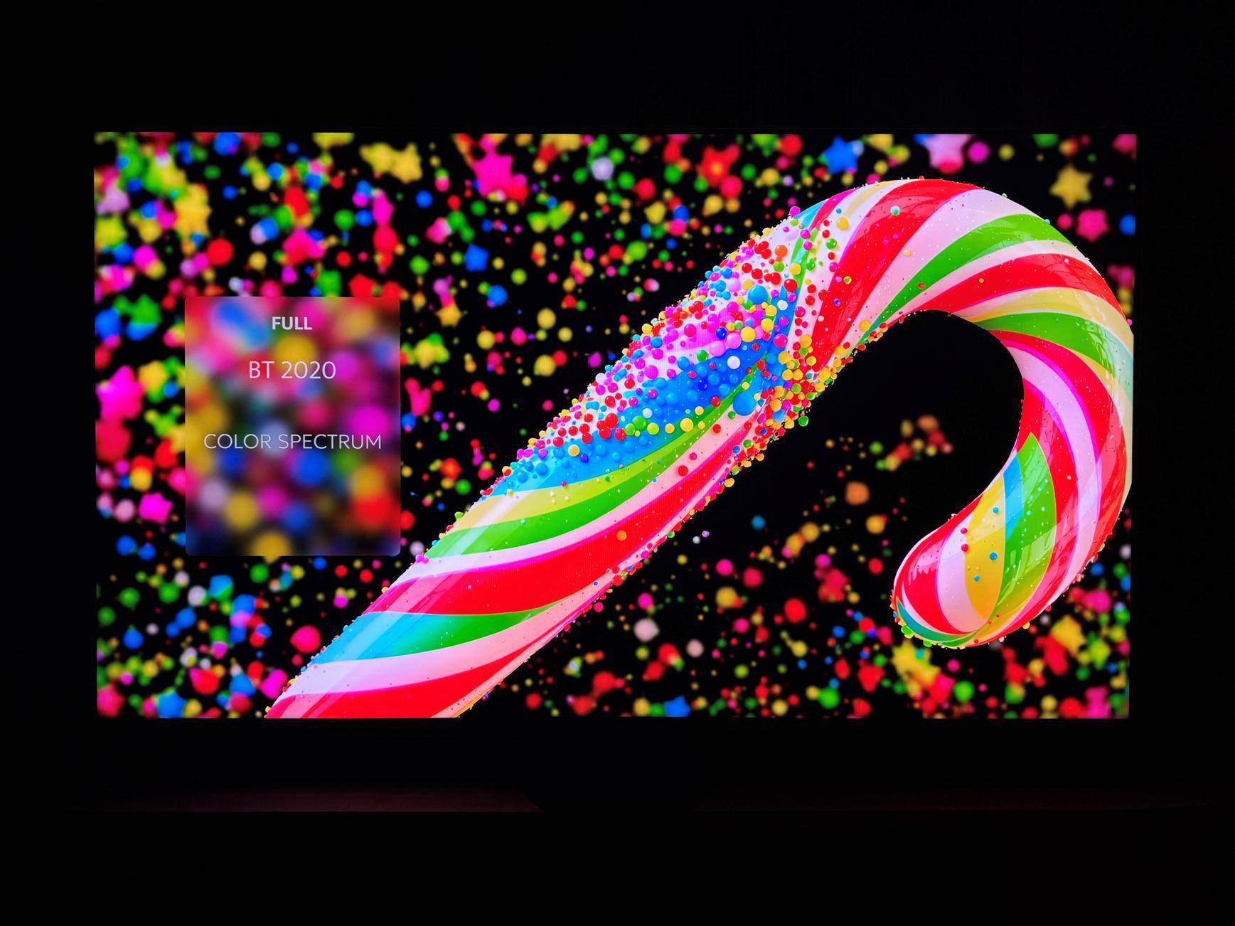 再来看看色彩部分。纯色当然是RGB-Mini LED电视最明显的优势了,无论在SDR、HDR或者杜比视界中,大面积的纯色,E8S Pro都要比非RGB-Mini LED的电视色彩要强,比如红色、黄色、蓝色,相同亮度下E8S Pro都显得更为鲜艳深邃,这是一眼就能看出来的。