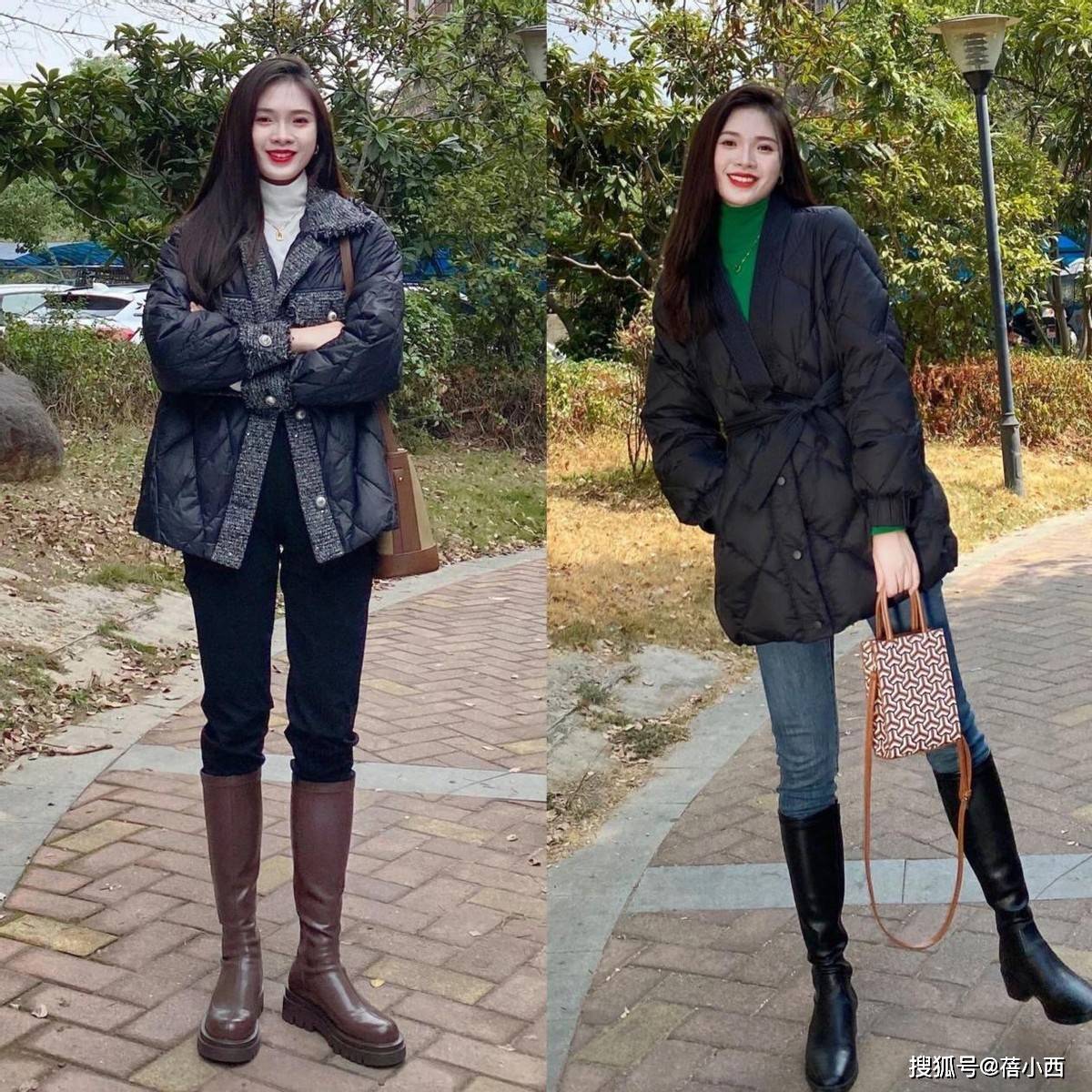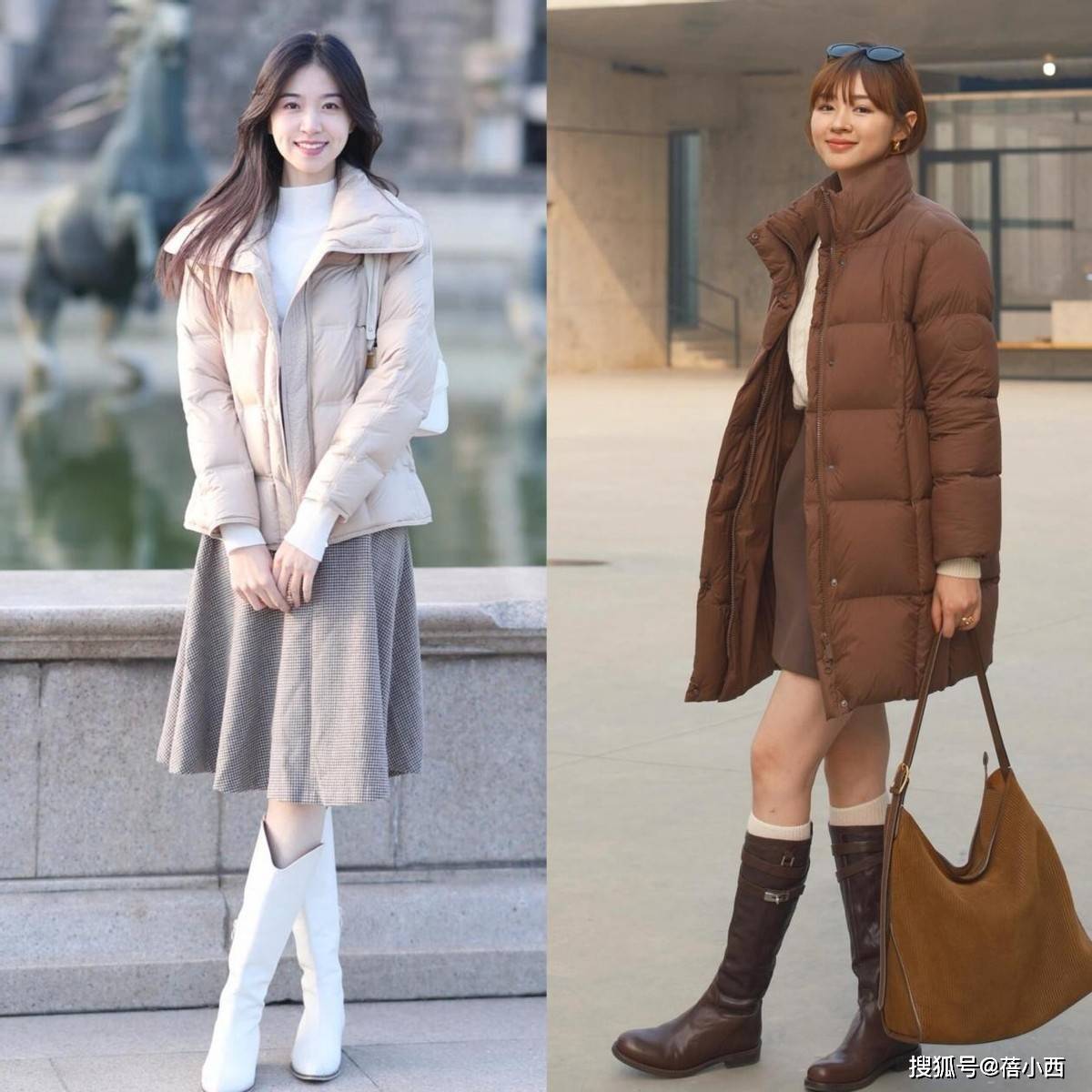长筒靴和羽绒服的组合真的很显腿长,姐妹们别觉得羽绒服和长筒靴不搭,选对款式就能秒变长腿精。优先选3-5厘米的粗跟长筒靴,靴筒贴合腿部线条但不紧绷,长度卡在膝盖下方5厘米左右,对小腿微粗的姐妹特别友好。