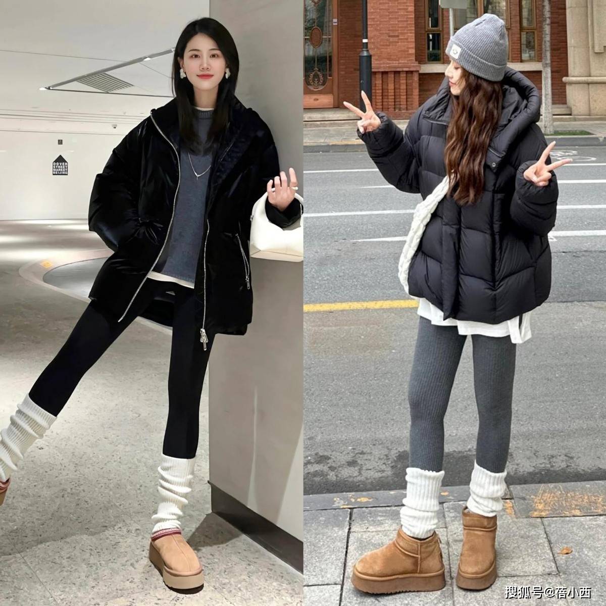雪地靴和羽绒服的搭配真的太保暖了,这一组“王炸组合”让我们再也不用为了温度牺牲风度。而且现在的雪地靴早就不是以前那种又肿又笨的样子了,选短筒、鞋头微方圆的款式,简约还利落,上半身用短款羽绒服搭加绒的糯米裤,把裤脚轻轻塞进雪地靴里,软乎乎的特别可爱,适合日常遛弯、逛街。