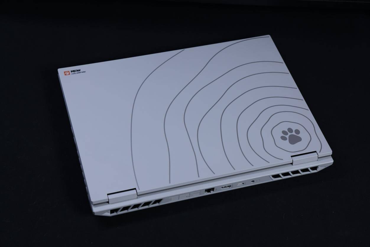 整机虽然采用了游戏本常用的塑料材质,但是这次MEOW R16 Pro在机身表面的打磨上应该是下了更大的功夫,精细丝滑的磨砂手感对于一台需要长时间高负载运行的游戏本来说绝对是一个加分项,在游戏时能够更加保证掌托位置清爽不粘腻,并且无论是在视觉上还是触感上,都一定程度上减轻了整机的塑料感。